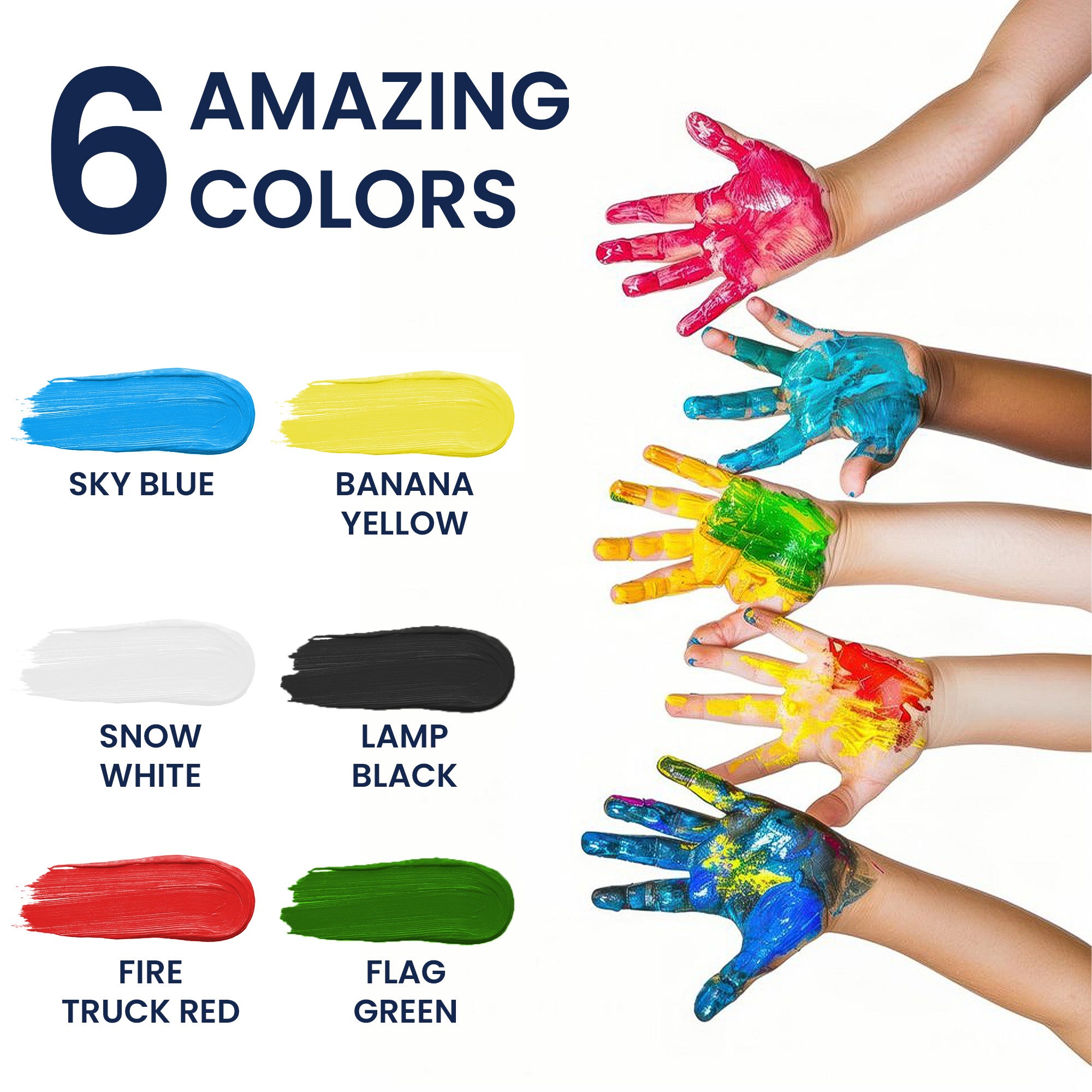 Vibrant Primary Colours: The set includes six essential primary colours – red, yellow, blue, green, white, and black. Mix and match to create your perfect shade.